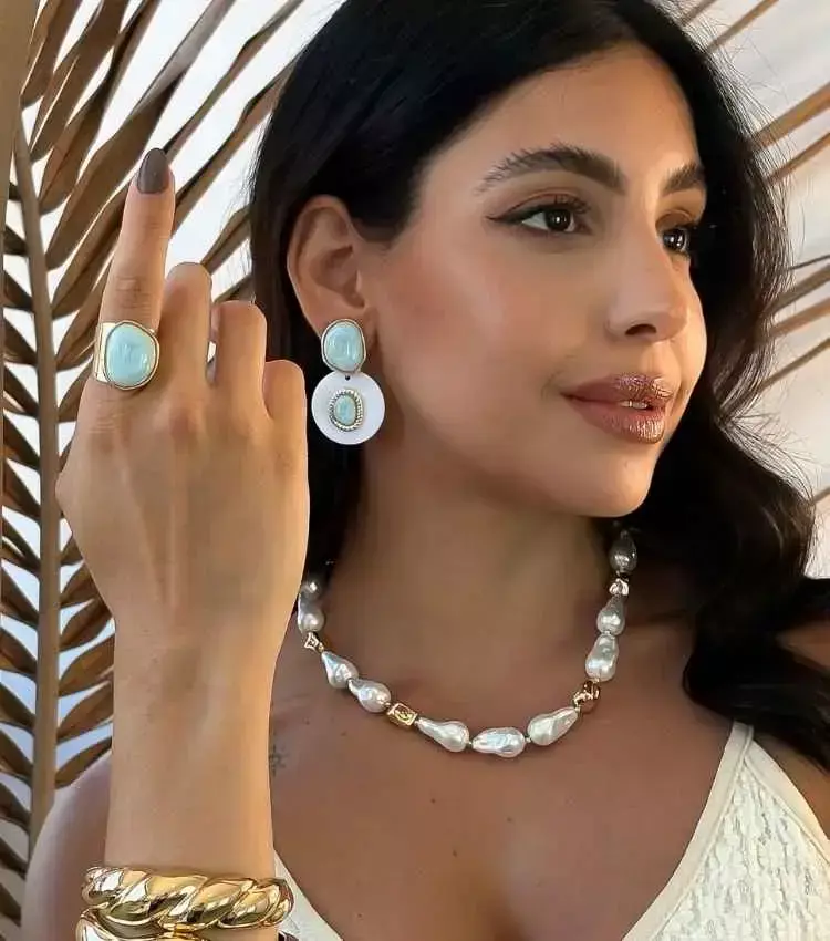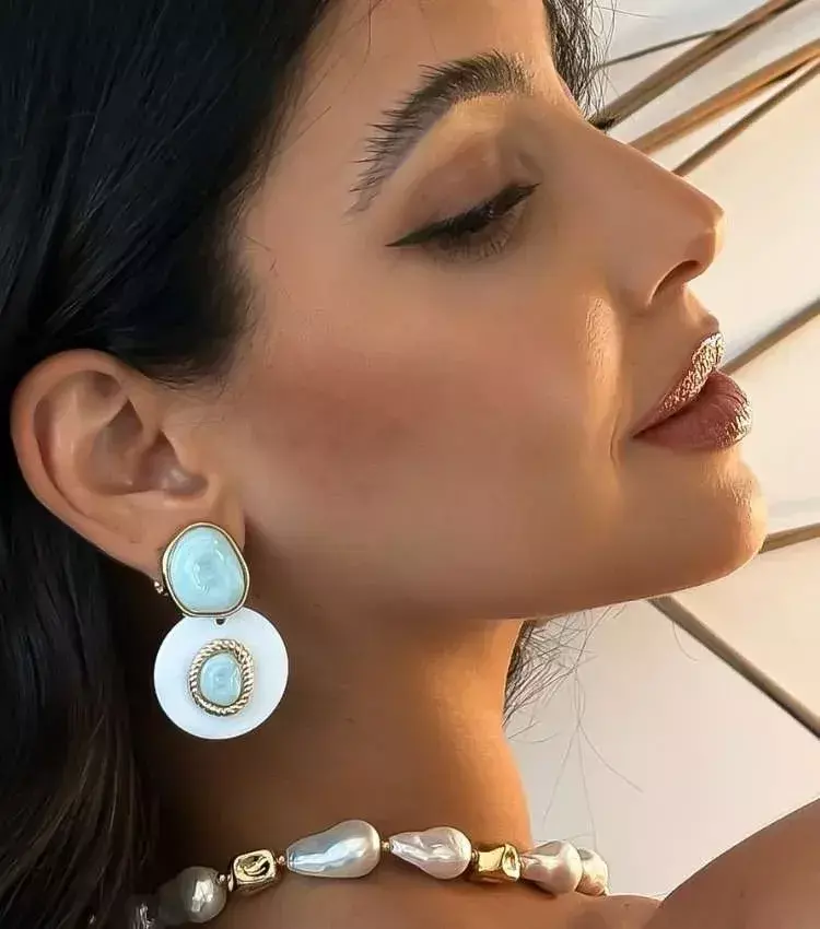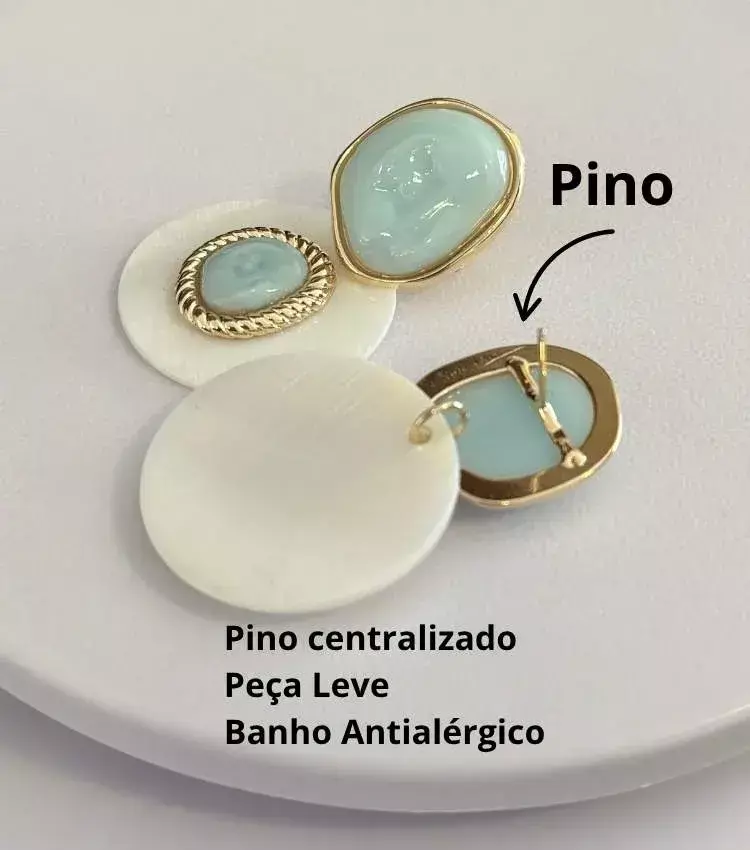 Deslumbre-se com a elegância e o charme do Brinco Madrepérola Resina Azul Bebê Banho Ouro 18k, um acessório antialérgico perfeito para todas as ocasiões.