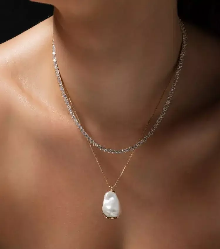 Para um look elegante e sofisticado, combine o colar Riviera com um vestido de festa ou até mesmo com uma blusa básica para dar um toque de glamour ao seu visual do dia a dia.